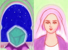 豊かさ、特に金銭的な豊かさがもたらされるでしょう。 どのような形であれ、Mさんには次のステージが用意されているようです。 そのきっかけも与えられることが暗示されています。 どのような形のはじまりになるのか、それはMさんご自身にかかっていると 言ってよいと思います。 最良の選択をされた結果が「金銭的な豊かさ」という形で示される、 ということではないでしょうか。 (かなり豊かになる、と出ています) 現状に強い反対が示されていますが、 どういう形でその勇気が求められるかと言うと、「人とのかかわり」で 求められているようです。 心を閉ざしてしまわないこと、相手に根気強く向き合うこと、 関係を築くこと、です。 様々な価値観、様々な精神レベルの人とかかわらなくてはならないのが 現状だと思いますが、今はまだ、 リーディングは以上です。 ◆気づき点 Mさんは確か波動調べで「宇宙地下世界の意識」を獲得されている、という 結果だったと記憶しています。 きっとどうすれば良い結果を得られるかということは心のどこかで とっくにご存知なのではないでしょうか。 しかし二の足を踏ませるものがある、ということですかね。 この絵に使われている色、「緑」と「ピンク」ですね。 どちらも「第四チャクラ(ハートチャクラ)」の色なのですが、 「心の開放(意識の開放)」を思わせる絵だと思います。 三角形からなる図形は勇気の紋章「汝自身であれ」 円からなる図形は知恵の紋章「汝自身を知れ」。 本来のご自身を出す勇気を持て(心の開放)、ということになるのかなと 思いました。 Mさんが自分を出すことで、周囲が色々な反応をすることも予測できてしまう、 ということもあるのかも知れませんが、 物事はもう隠せない世界になっているようですので、 早めにそのあたりの問題を解消しておくのが得策、ということなのでは ないでしょうか。 なぜこの絵が描かれたのか、Mさんにご縁だからというのもあるでしょうし、 高い意識を獲得していることをあらわしているのだろうとも思います。 それを十分に生かしてアクティブに行動することを求められているようですね。 以上です