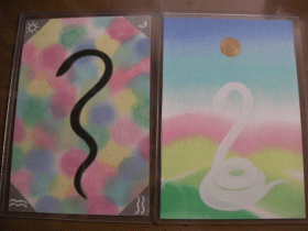 | <白ヘビ黒ヘビ/みつきさんのリーディング>(2010年8月9日〜16日) Fさんから絵の依頼がありました。 今回で、5枚目の依頼になります。