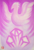 | <虹色の水晶/viancaさんのリーディング>(2007年7月24日) Yさんから本質の絵の依頼がありました。 スピリチュアルなことに興味を持ち始めて10年は経とうとしていますが いまだにスピリチュアルな体験をしたことがないため、 私はそういう経験をすることができないのではないか、と思い始めています。 また、スピリチュアルな本をよく読むのですが、 「アセンション」やら、「スピリチュアルな事柄に目覚める人が急増しつつある」 といった内容をよく目にします。 興味はあるのにいまだに何も感じない自分がなんとなく情けなく、 そういった流れから取り残されたような気持ちになってしまいます。 なんらかのきっかけで内なる自分と繋がることができたら、 自分に自信が持て、自分を好きになれるんじゃないか、 今よりもっと楽に生きていけるんじゃないか、と考えてきました。 こういった過剰な期待は良くないのかな、と最近は考えているのですが、 何がどうダメなのか、分からないというのが現状です。 まぁ、トンデモ好きな私が言うのもナンですが、 今出来ることを真面目にやればいいのだと思います。 特別な体験特殊な能力などを興味本位で求めても、それを受け入れる方の 人間の能力(判断力や思考力)が乏しければロクなことにはなりません。 人間の能力を上げるのは、「今、あなたが居る場所」です。 他のどこでもない。 それをやらないで徒に不思議体験を求めても、ただ、不思議「体験をしただけ」という だけに終わる。 スピルチュアルな事柄に目覚める人・・・というのは漠然としていますが 精神世界の流行りに敏感だとか、用語を沢山知っているとかも、 この中に入りそうです。 でも、それはただ「知っているだけ」です。 上に挙げた「体験しただけ」の人と同じレベルにある。 肝心なのは「知ったこと」「体験したこと」を知恵に転換出来るほどの 波動量(知恵)を持つこと。 そして、これはすぐには持てない。 毎日毎時間毎分毎秒、自分の意識をはっきり持って、目の前の ことを正確に感受し、それをもとに知恵(波動量)に転換する、という 地道な作業をしないと・・・ それをしないで、スピリチュアルなことを求めるひとは陶酔次元 であると、言えます。 自分の意識、心構えを立てなおすのが先です。 ifさま こんばんは、Yです。 ifさんからのお返事を読んでみて、 自分は地に足がついてないみたいだな、と思いました。 神秘的なことばかりに心惹かれて 今を生きれてない、みたいな。 絵を描いてもらう前に、ひとつ気付くことができました。 ありがとうございます。 私だけの絵、楽しみに待たせていただきますね^^ よろしくお願い致します。 ifさま ![]() こんばんは、先日「本質の絵」の絵を依頼したYです。 今日手元に絵が届きました!^^ そして絵ですが、本質の絵を手にして一言、 「きれい!」。 虹色のクリスタルと、バックの宇宙の色、 全体的な雰囲気がとても幻想的で きれい!すごい!きれい! とひたすら繰り返してました^^; 両手で持ってじっと見つめていたら、 胸がドキドキし、 なおかつホッコリした気持ちになってきます。 なんだか不思議な感覚です。 とにかくまず目を引いたのが、虹色に光っていて、どこか幻想的なクリスタル。 こういった色合いの絵が大好きなので、とても嬉しいです。 クリスタルの下側は水に浸かっているのかな。 静かな水面に波紋が広がっていますね。 バックの右上にあるのは、周りの白いリングからして土星かな。 でも左上の惑星はなんでしょう。惑星のまわりにボンヤリと薄紫の光が広がってるの をみると 恒星でもあるような・・・それにしても星の色が茶色いので 月のように太陽の光を反射している惑星かな。 天体には詳しくないのでネットでざっと調べてみたけれど、 色的には遠目にみた金星に近いの・・・かな?、くらいしか収穫がありませんでした ^^; 何か縁がある星達なんでしょうかね、気になります^^ 絵についていたおみくじは「仲間」でした。 うーん、仲間。。。 スピリチュアルなことを気軽に話せる人物が母しかいないので、 そういったことを話し合える友人が欲しいとは常々思っていましたが。 どちらかと言えば、というか、どちらかと言わなくても友人は少ないので 仲間を見つけなさいということなのかな。。 今はまだちょっとピンとこないので、「仲間」という言葉を心に留めておこうと思い ます。 絵の鑑定をviancaさんにお願いしていたのですが、 リーディング結果が届きましたので、「虹色クリスタル」の結果を ご報告させていただきます。 **************************************** 宇宙とクリスタルの絵 この絵に表れているもの:「THE STAR(逆位置)」 この絵がもたらすもの:「THE HANGED MAN(逆位置)」 絵からのメッセージ:「大天使ジョフィエル:Patience」 「大天使ハニエル:Passion」 中心を自分自身に置きましょう。 たとえばひとからの評価や、自分の持ち物、仕事、地位、 そういった「なにを持っているか」「ひとからど