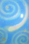 | <メッセージ=燃える手の平>(2008年5月23日) これも上の記事のOさんの絵です。 メッセージです。 メッセージの絵は手のひらから炎、金と銀の渦巻き