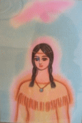 | <インディアンの少女>(2008年2月22日) Tさんから本質の絵を頼まれました。 で、何を描こうかなぁ・・・と思ったらアメリカ・インディアンの少女が浮かんだ。 服装は分からないけど、まぁ、こんな感じでいいかな、と描いてみました。 空には鷹か鷲が飛んでいます。 この鷹か鷲は霊的な存在だと思うので、下書きのピンク色のままにしました。 なんとネイティブアメリカン(インディアン)の女の子が描かれた「本 質の絵」を見て、完全に吹っ飛びました。あれ、どこかで見たことが!!! 何 処でだろう??? すっかり忘れていたあるものを思い出し、思わず鳥肌!!! (((((((( ,)☆ ☆(( (^ο^((