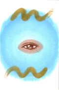| <目>(2009年4月21日) 上の記事と関連しています。 私はずっと前から「目」の絵を描きたかったのですが、これを描いたら 御客さんが気モチ悪がるだろうと思って描きませんでした。 でも、この間、とうとう描いてしまいました。 気モチが悪いとクレームが来たら で、(いいや、描いちゃえ!)と、描いてみました。 上の記事の絵は「目の絵」の二枚目の方です。 (うわっ、目なんて気持ち悪い!)と、クレームが来るのを覚悟していたら 不思議なことを報告してくれました。 掲載ありがとうございます!