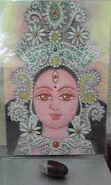 二枚になったのは 顔の肌荒れが凄いというので 癒す絵をオマケで描いたからです。 女神の背景は癒しの緑、 オマケの絵は太極図が緑と白で この色の組み合わせの意味は 「癒し」なんだそうです。 オマケをつけたのは女神の絵が簡単だったこともありますが。 女神の絵を見た瞬間、あ、あたしだ。と厚かましくも思いました。