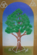 | <ムーの柱>(2010年1月5日〜6日) Tさんに「ムーの柱」を描きました。 (本質だっかメッセージなのか忘れました) 絵具の滲み具合が良かったので敢えて背景は塗りませんでした。 Tさんにはオマケとしてもう一枚「ムーの紋章」を描いてます。 これは照とは違って周囲の三角形が8個の絵です。 ![]() Tさんはkanchamaに絵をリーディングしてもらったら 「ムーの王女だった」と言われたそうです。 「ムーの柱」は何枚か描きましたが「ムーの紋章」を描いたのはTさんだけなので Tさんが過去世でムーの王女だったというのはあり得ます。 あ、私も思い出しました!
