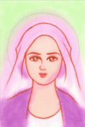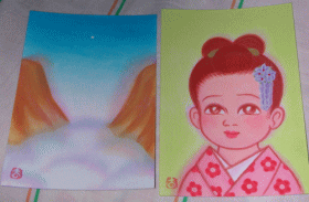 (添付の絵の巫女さんですが、娘はお母さんにそっくりと言っています)