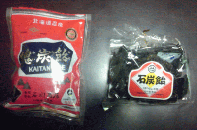 | <塊炭飴と石炭飴>(2013年6月9日) 今日、北海道小樽市のKさんが石炭飴を送ってくれました。 外観は塊炭飴よりも石炭に似ています。 塊炭飴は緑色っぽいのですが石炭飴は石炭にそっくり。 ![]() 舐めてみたら味は・・・両方ニッキの味がしてとても美味しく優劣つけ難し。 Kさん、有難う! |