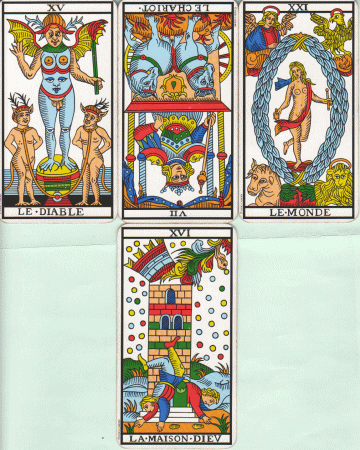 | 先日二十歳になった倅に「年金払え」という通知が来ました。 社会保険庁が一生懸命仕事をしていたら、 そして、老人達が沢山年金をもらって楽しく暮らしていたら 私は喜んで払いましょう。 でも、社会保険庁の職員は仕事もせず、インチキ、詐欺、覗きまでやり、 辞めさせられない。 また、辞めさせられても再雇用ですと。 国民から集めた大事な年金を何億円もする施設を作りまくり、 無駄遣いはする、態度は悪い。 年金を払って欲しくば、まず、社会保険庁がちゃんとやらなくてはならないのでは? それをあの体たらくで金を集めることばかり考えている。 最近は雀の涙ほどの年金から、医療保険だか何だかを差っぴいて支給するそうで。 呆れてモノが言えません。 なので、カモワンで訊いてみました。 質問「 一般論です。国民年金は払わなくていいですか?」 答え「YES」 ![]() 上の段左から右へ過去現在未来です。 過去=悪魔。 悪魔は社会保険庁の職員か、保険庁そのものですね。 保険庁は国民の首に縄をつけて、金を納めさせようとしています。 実際していましたね。 今、雀の涙ほどの年金からさらに医療費を差っ引かれている老人達です。 若い人は世の中を見て、この少子化の様子から未来には 年金制度が破たんすることを知っています。 国民年金不払者の割合は右肩上がりに増えているそうです。 当り前です。 過去は悪魔(社会保険庁)が舌を出し、国民をバカにしてクビに縄をかけ 金を巻き上げている様子が出ました。 現在=戦車R 国民年金は払わなくても罰則がありません。 将来、年金がもらえないだけです。 真面目にお金を納めてもその金を社会保険庁が湯水の如く無駄遣い するのを知ったら、誰が国民年金を納めるでしょう? 若い人(戦車)の中には納めない人がどんどん増えています。 戦車は不払いをして、闘っている若者です。 意味がピッタリです。 とは言っても納めなくても良いのか?と、未来が不安になっています。 戦車が逆位置ですからね。 戦車Rの下に「神の家」が出ました。 これは「天罰が下る」という意味です。 さて、天罰は誰に下るのでしょう? 最初の質問「納めなくても良いか?」の答えが「YES」ですから、 国民にではありません。 天罰が下るのは社会保険庁、政府、各省庁の方です。 カードの絵を見ると、天罰が下ったので、社会保険庁の職員が建物から 我先にと逃げ出しています。 これは日月神の「天地グレンとひっくり返るのぞ」という言葉を思い出させます。 未来=世界。 私はこれを「次の世」(日月神示)と解釈します。 次の世はもうすぐです。 今、不安だったり苦しかったりするかもしれないけど、 あと、もうちょっとですよ、と女神が言っているようです。 戦車Rの若者と世界の女神はお互いにしっかりと見つめ合っていますね。 もうすぐ未来がやって来ます。 こんな感じになりました。(2008年4月16日) 参考「あきれた社会保険庁の実態」 https://youth.jimin.or.jp/iken/ |