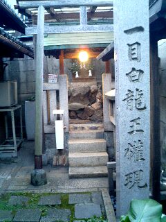 2〜3日前のこと、 私の住んでる那古野(なごのと呼ぶ。那古野というのは、名古屋の元の名前)に、 ふだん歩いているところなのに、 全然知らない文字が駐車場に接した家の角に書かれているのを発見した。 「一目白龍権現」・・・なんじゃい、これは? 紙だけが張られていてあたりには何もない。 キョロキョロしていると、ガードマンが怪しそうに見ているので、 えいっと駐車場の中を勝手に入っていった。 突き当たりに来ると右に折れて、違い棚のように、 また左に折れた正面にひとつの社が・・・。 脇の石碑に「一目白龍権現」と・・・。 ひとつ目の白龍の権現さま、なんやこれ? 近くの酒屋のおやじさんをつかまえて、聞いた。 「ああ、いちもくさんね。お社ですよ。古くからある。 このあたりは白龍にまつわる神社が多いよ」 一目(いちもく)と読むのだ。 このあたりには多いのだ。 一目、置けということかな、なんて思いながら一目散に去った。 以上です。 なにを言いたいのかといえば、以前発見した芭蕉の句を思い出したのだ。 (「ヤマトタケル、空海、芭蕉」を読んでください) 何とはなしに 何やら床し すみれ草 ボ〜〜〜〜〜としていたら、 何やら心引かれる・・・ なんとそれはすみれ草だった。 最後のところでピントがあいフォーカスされています。 ああ、これは3次元(形而下)世界の5次元的(形而上)認識方法だなと思うのです。 つまり、 何とはなしに(3次元) 何やら床し(4次元) すみれ草(5次元) アセンションとかフォトンベルトとか新しい言葉に右往左往する前に、 古人の智慧に耳を傾けたいものだ。 4次元とは、存在をあらしめる己れ自身の意識そのもの。 意識が3次元物質界に下降(シフト)すると悪になり、 5次元精神界に上昇(シフト)すると善ともいうが、 それにとらわれてはいけない。 自分という意識の存在を、くれぐれも忘れるなかれ。 これを失うと心の葛藤がなくなってしまう。 葛藤がなくなると、自分が神だと思ってしまったり、人のせい、悪魔のせいにしてしまう。 アネハネハ・シンドロームは、自己の不在に連鎖する。 自己の発見、それが自分探しの結論であり、生きるということの出発点。 4次元を見失うと、どつぼにはまりますよ。 だから、私という意識は3次元世界にはいないのです。 ちなみに、これはチャネリングではありません。 私が言っているのです。w いちもくさん(12月7日) ブログを書いてから、気になって・・・ いや、この間書いた「いちもくさん」です。 なんでかというと、 一目・・・これ自分の「自」じゃないかと思ったわけです。目の上にダッシュのような一。 白龍・・・無垢なる霊的エネルギー存在 権現・・・あらわれ、顕現 最後尾に書いた、無垢なる自己の顕現=B 無意識に書いたのだが、気になって・・・。 そしたら、ガ〜〜〜ン。 いちもくさんに路地を曲がって目に映じたものは、 「一目白龍王権現」なのです。 ![]() ・・・お〜、おいらのことじゃん。 龍王さまの権現なのだ。 王を見落としていました。 なんか、ありがたく、かしこみかしこみ・・・ お参りしてきました。 自分で自分を拝むような。 うれしいです。自分に出会ったような。 自分の社ができたような・・・感謝です。 最高です。 天から降ってきました。 このあたりの故事を見ても、全然、のっていない。 小さな祠ですからね。 時空を超えて現れたとしか思えない。w なんとはなしに なにやらゆかし いちもくさん 面白く、不思議な話です。