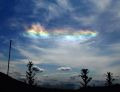 群馬県北部や前橋市の上空で12日、 虹が横一直線に広がったように見える「環水平アーク」が観測された。 前橋地方気象台によると、環水平アークは 高度5000‐8000メートルにできた雲の氷の結晶に、 太陽光が乱反射して起こる現象で「彩雲」とも呼ばれる。 観測されるのは珍しいという。 |